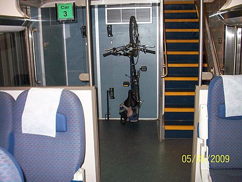 every coach have 3 bike racks at entrance doorway.